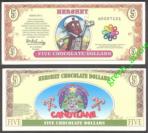 ![]() 2008 $1 - $5 - $10 Hershey Dollar (Mint) Price = $150.00 - (3-digit Same Serial Number Set) Can supply multiple sets in Sequential Order |